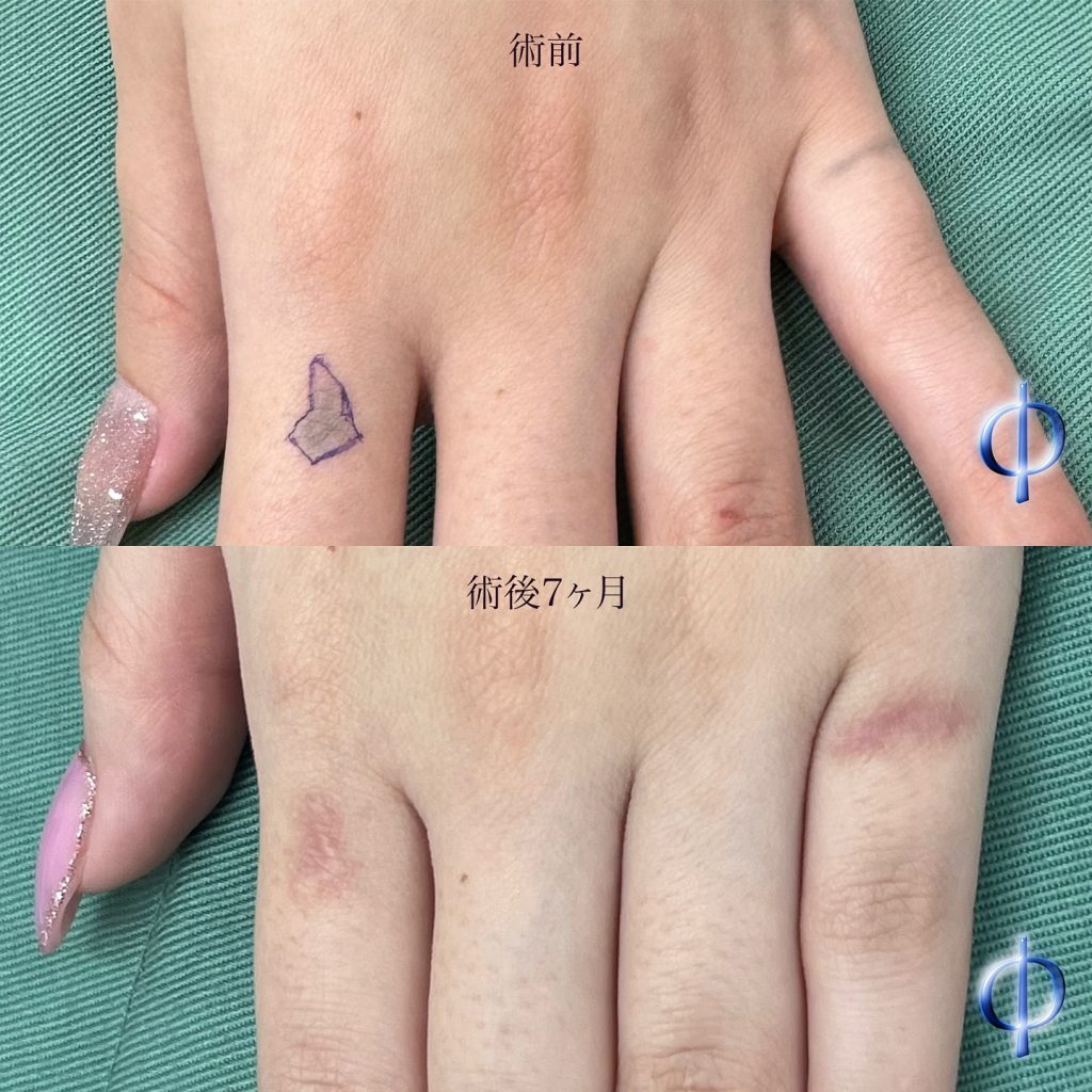 刺青を除去するにあたってはレーザー治療が広く行われていますが,回数がかかることや,色によっては除去が難しいことがあります。ワンポイントタトゥーであれば切除手術を行うのもよい選択肢です。